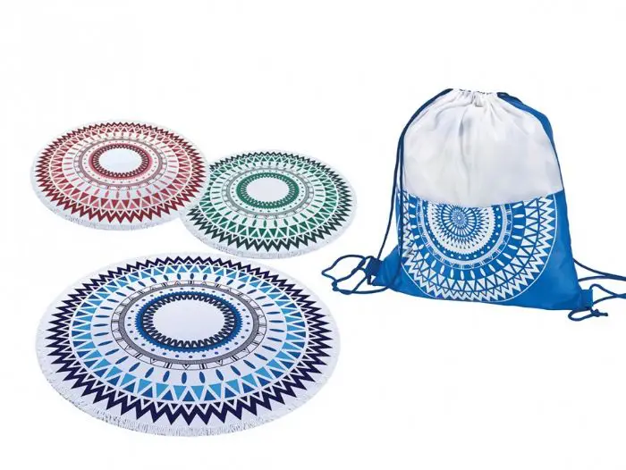מגבת חוף עגולה בתיק נשיאה קוטר 150 ס"מ BM1519 מעוניינים במוצר? לחצו כאן! מגבת איכותית 280 גרם למטר. אפשרות להדפסה על המגבת ועל התיק. שתף את המוצר